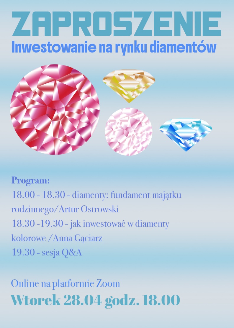 Już we wtorek, 28.04 o godz. 18:00 na platformie Zoom, odbędzie się spotkanie pod hasłem „Inwestowanie na rynku diamentów".